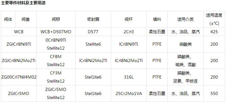 5、閥體材料品種齊全,填料、墊片可根據實際工況或用戶要求合理選配,能適用于各種壓力、溫度及介質工況。